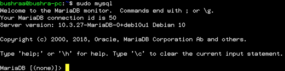 The MariaDB root password is configured initially, so, you will be required to set a password. Log in to the MariaDB shell using the following command: