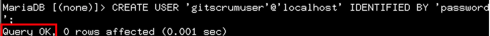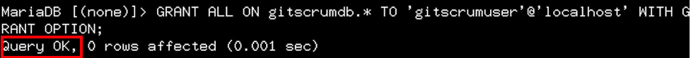 The next step is to grant all the rights and privileges of the GitScrum database using the following: