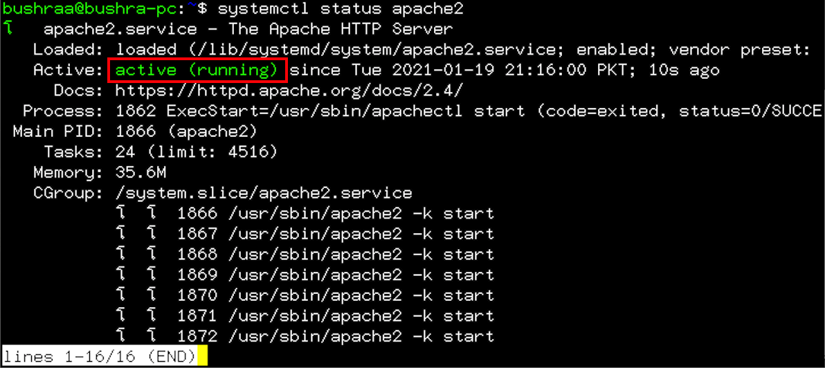 Now, start the Apache and MariaDB service. Issue the following command in the terminal to start Apache:
