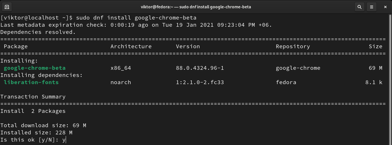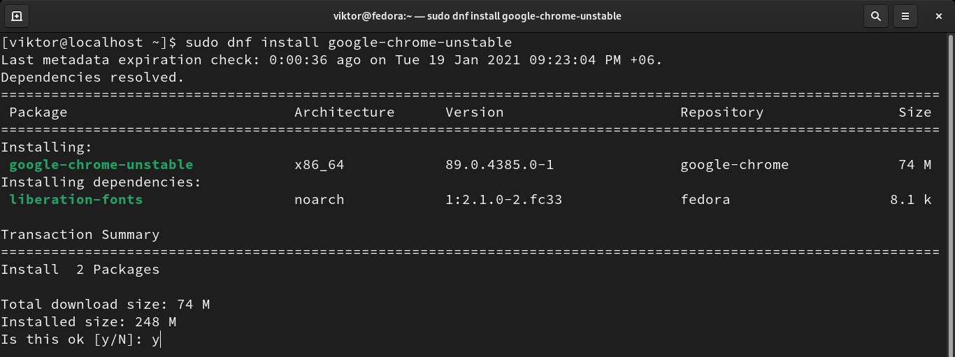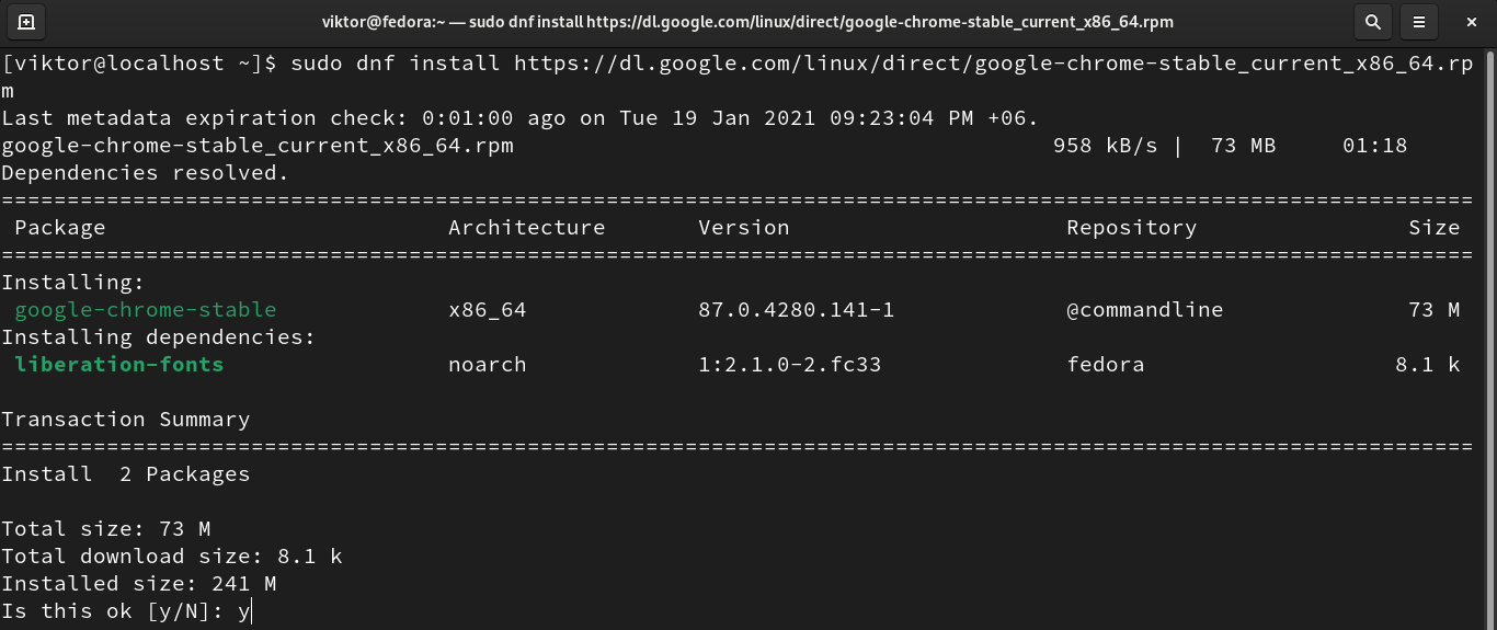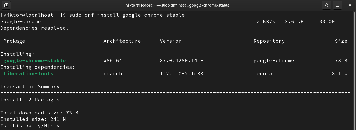 Because Chrome is a popular browser, Google officially offers an installable RPM package. Fedora users can manually download it from the official Chrome download page. Alternatively, DNF can download and install it.