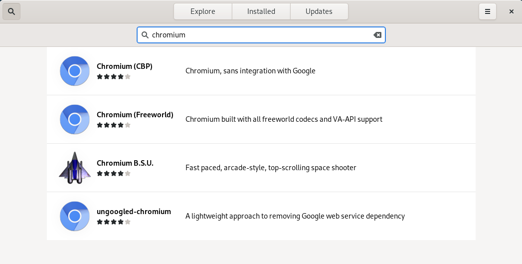 In the case of the Chromium browser, it’s directly available from the official Fedora repo. Some variations of the Chromium browser are also available from the RPM Fusion repository.
