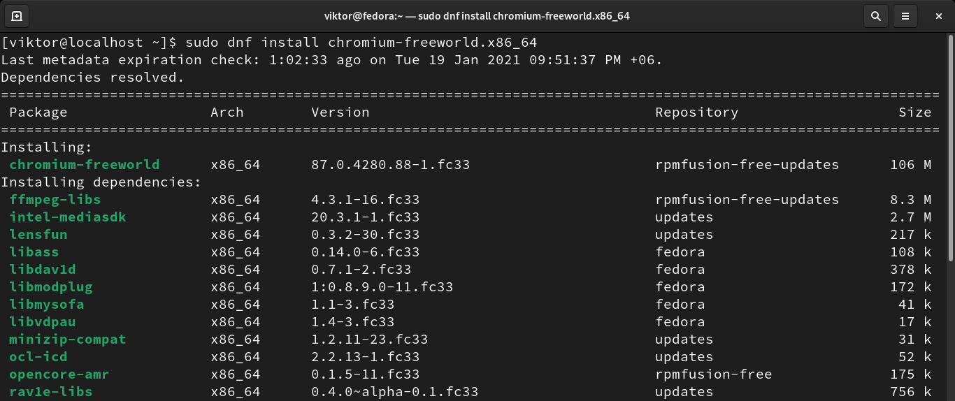 RPM Fusion is an awesome repo to have on Fedora. It’s a third-party repository that hosts numerous packages that Fedora or Red Hat doesn’t officially ship. All the packages of the repo are kept updated. The reason it’s recommended is that some flavor of Chromium browser comes from the RPM Fusion repo.