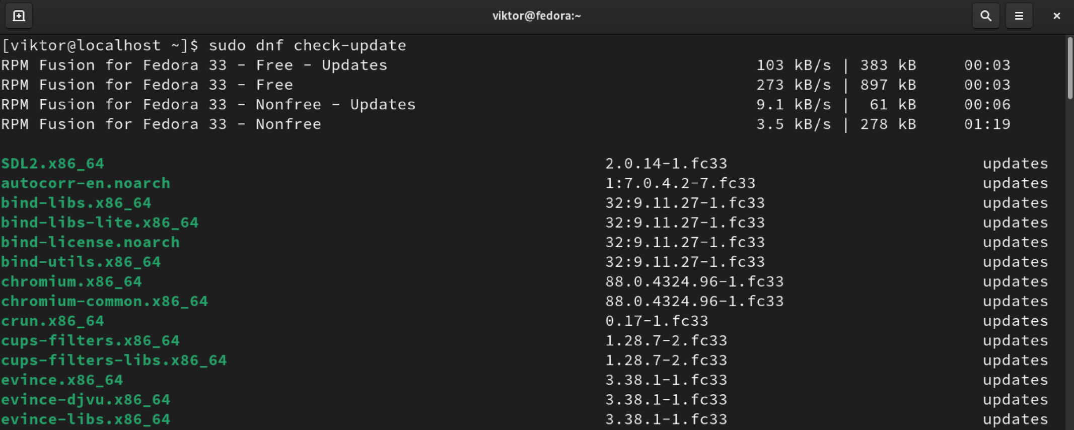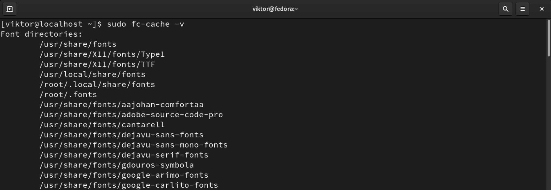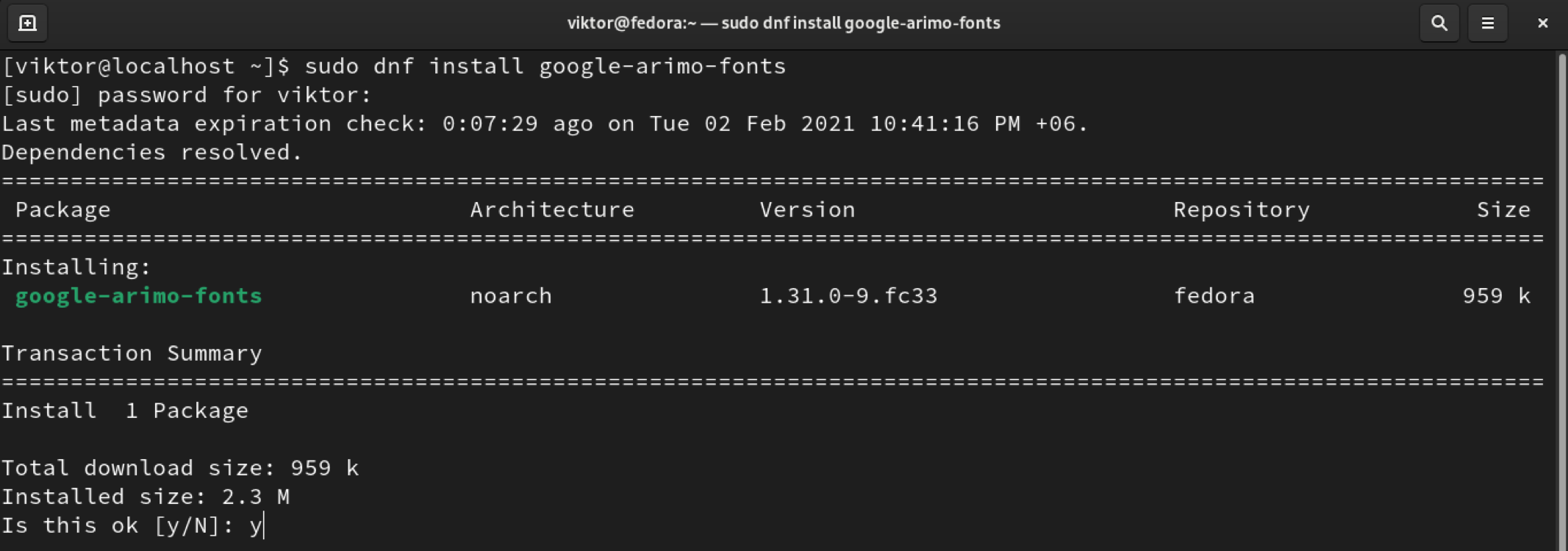 For Fedora, the RPM Fusion repository hosts all the Google Fonts as an installable package. This way, we can use DNF to manage the Google Fonts package for us.