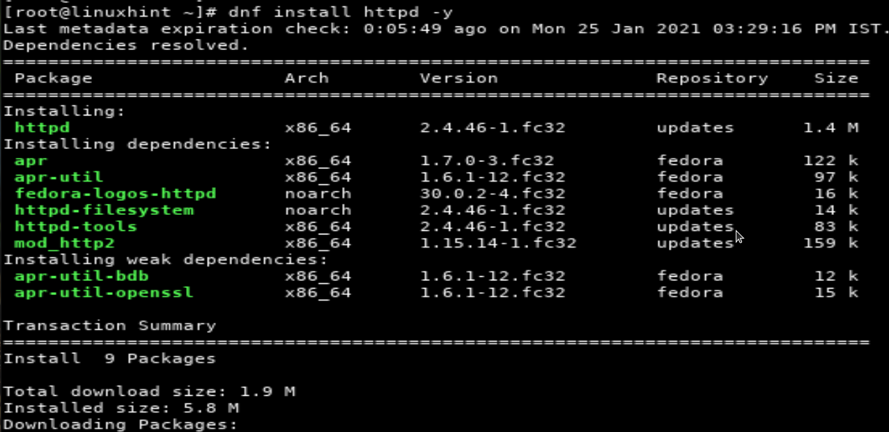 The following sections show the installation process for installing the LAMP server in Fedora OS: