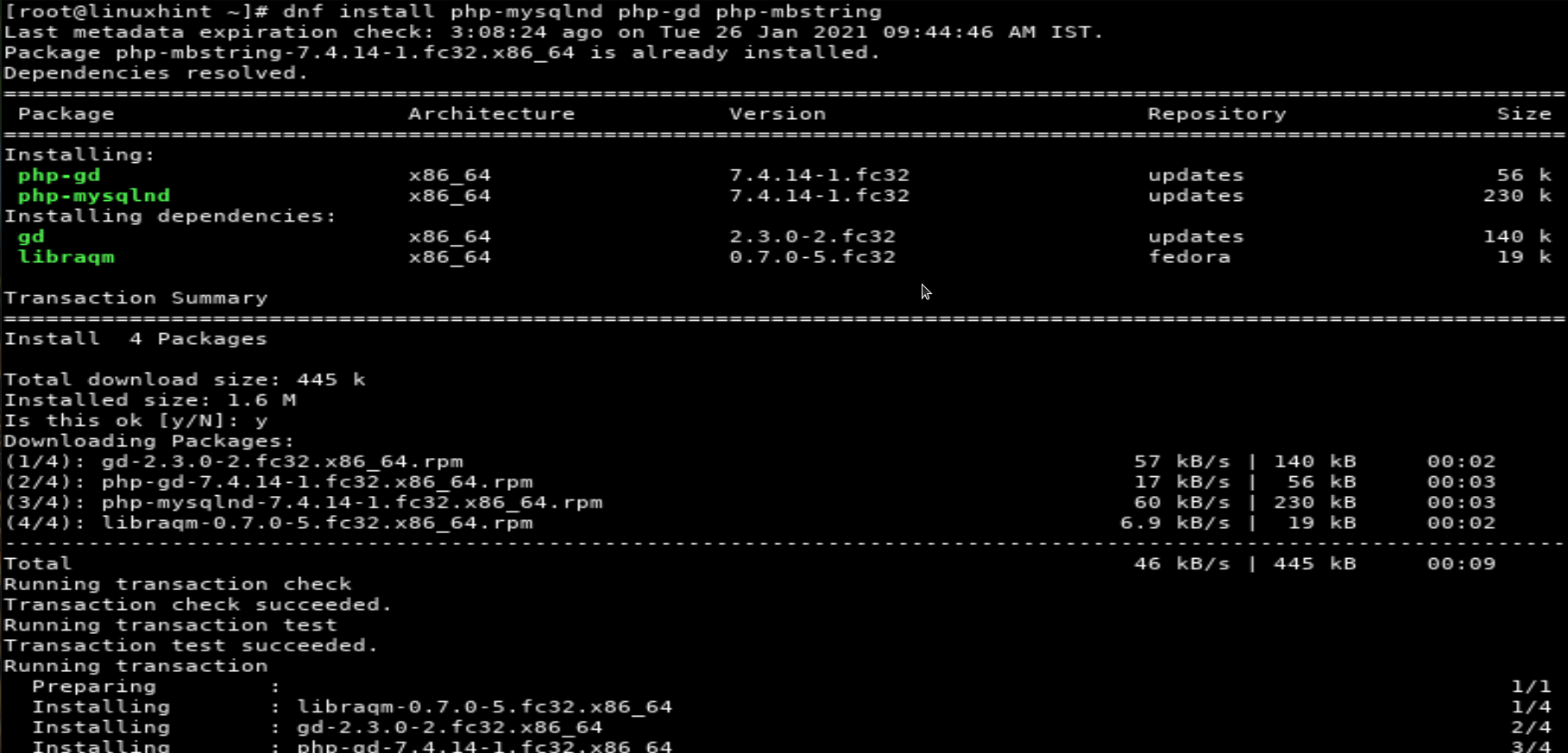 Some of these modules could already be installed with PHP; in our case, php-mbstring was installed alongside PHP.