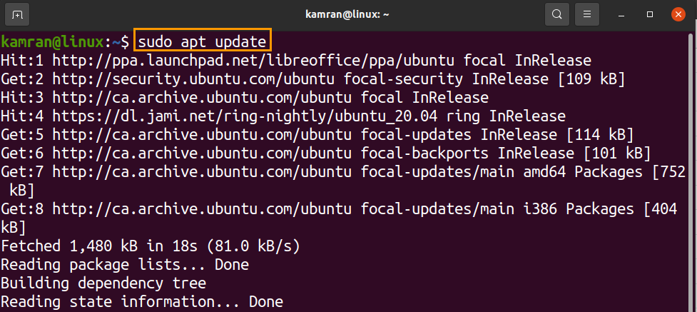 The LibreOffice is included in Linux Mint 20 and Ubuntu 20.04 standard repositories. Fire up the terminal and update the apt cache before installing LibreOffice: