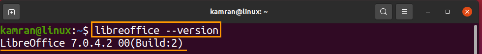 The output shows that LibreOffice 7.0.4.2 is installed on my Ubuntu 20.04 system, the latest version.