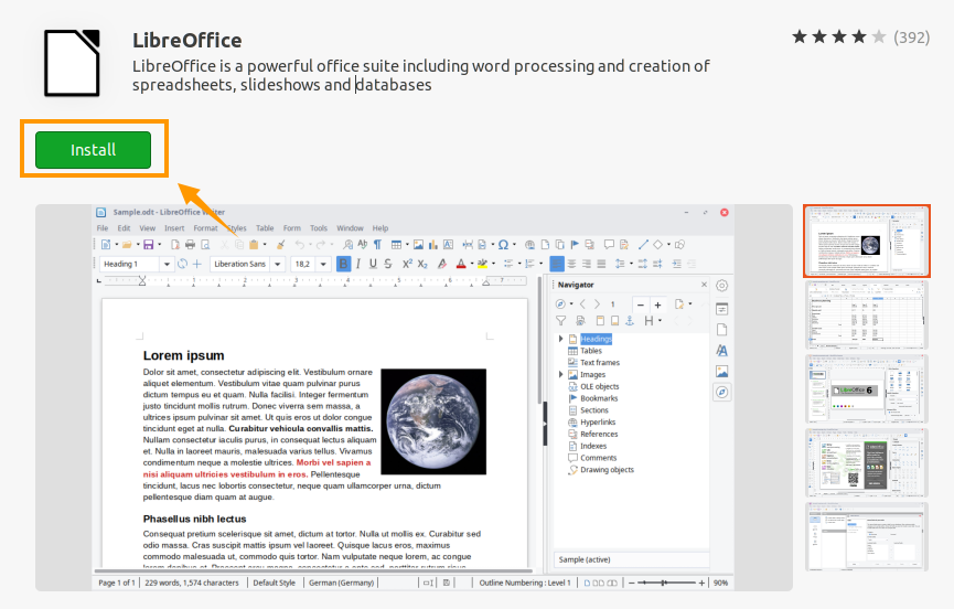 Installing LibreOffice on Ubuntu from Ubuntu Software Center