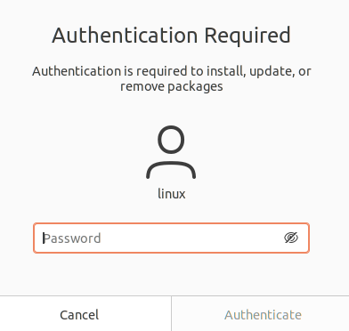 Authentication is required for installing LibreOffice. Enter the password and click on ‘Authenticate’.