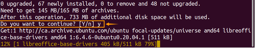 Press ‘y’ to continue installing the LibreOffice from the PPA repository.