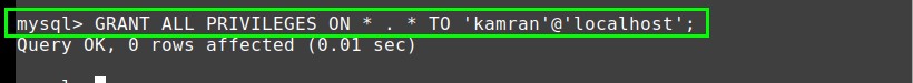 After successfully creating the new user, you can grant the privileges to the user as follows: