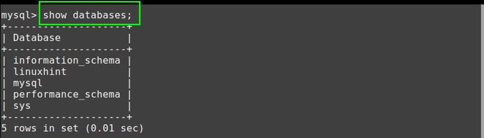 The MySQL interactive shell will start. Once the MySQL server is set up, the MySQL creates a root user that can manage the databases and perform various administrative actions.