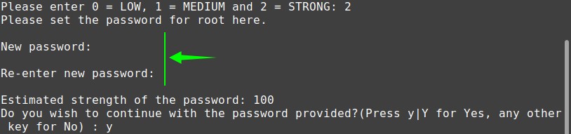 Moreover, enter the password and re-enter the password for confirmation. The command line will display the estimated strength of the password.
