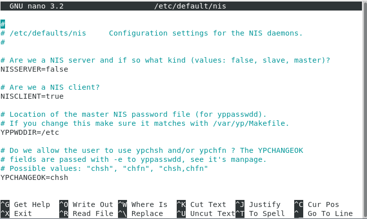 Now we will set the NIS as the master server on Debian 10. For that, we will access the /etc/default/nis file with the command shown below: