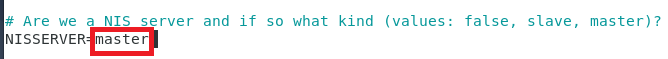 We will then assign the value “master” to the “NISSERVER” variable, as highlighted in the image shown below. After that, we can save and close our file.