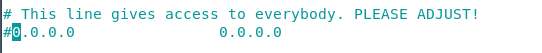 Finally, we will add the allowable IP range to the end of this file, as shown in the image below. After that, we can save and close our file.