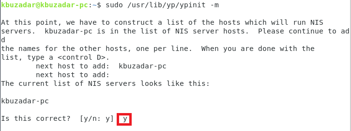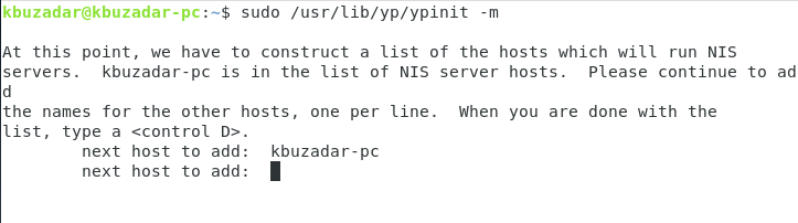 At this point, we can add any hosts to this database that will be running the NIS servers. Once you have added the hostnames, you can press Ctrl+D.