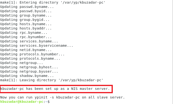 Once the NIS database is updated, you will get a confirmation message that the selected system has been set up as a NIS master server, as highlighted in the image shown below: