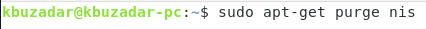 First, we will run the command shown below to remove the NIS server and its configuration files: