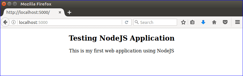 Open any browser to check the web server code is working properly or not. The script will return ‘NodeJS App’as content in the browser if the above code executes properly. Type the following URL in the address bar for checking.
