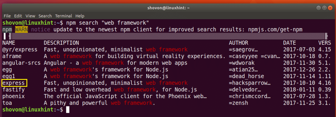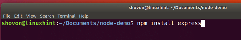 I am going to install “express” module locally to show you how to install Node.js module with NPM.