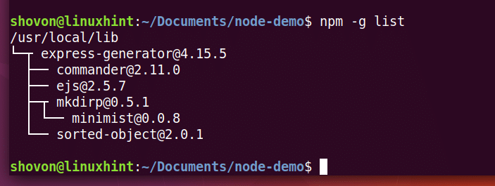 You can also install a module globally. Let’s say you want to install ‘express-generator’ globally, you would be running the following command: