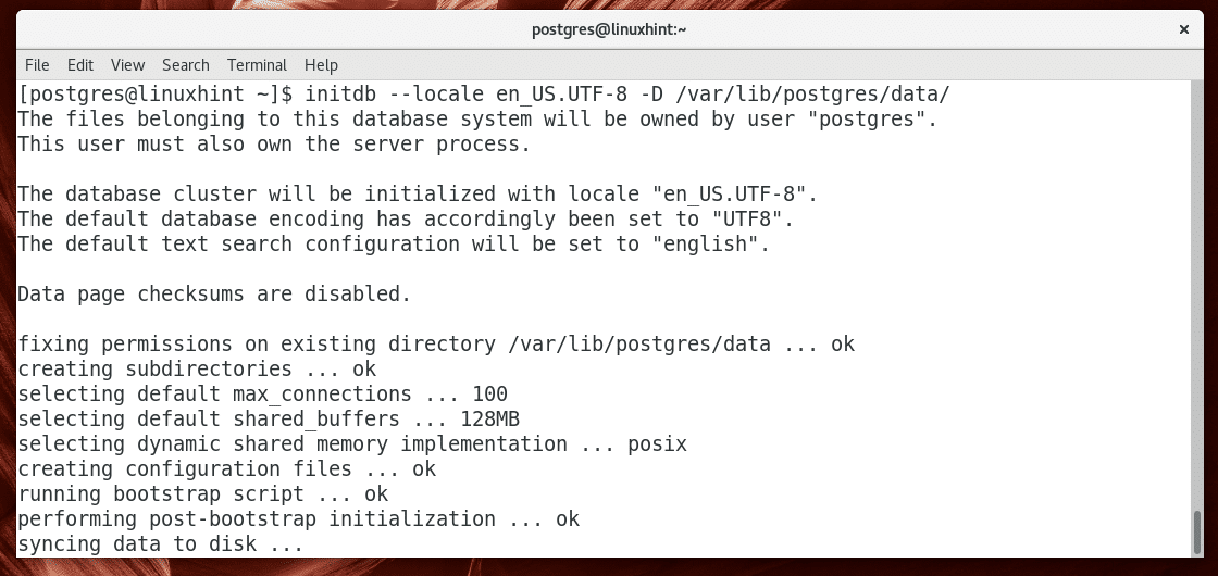 Now you can initialize the data directory of PostgreSQL with the following command: