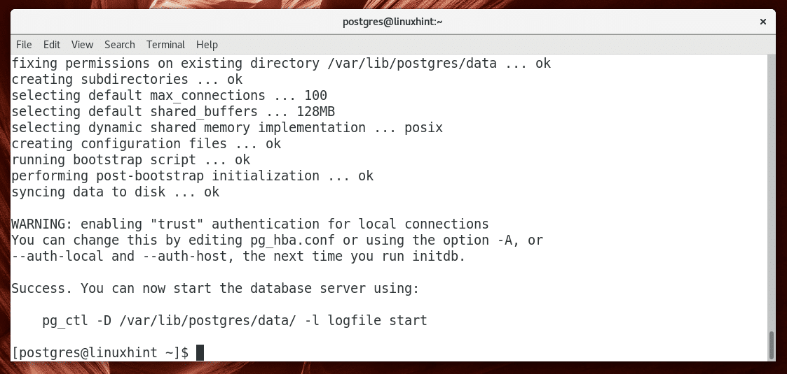 Now that the data directory of PostgreSQL is generated, you can start PostgreSQL with the following command: