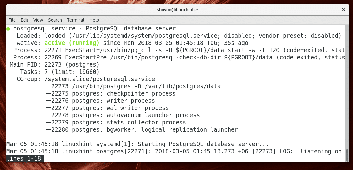 As you can see from the screenshot below, the PostgreSQL database server is running.