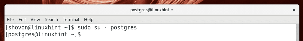 NOTE: You should always login as postgres user to use or do any type of administration of PostgreSQL. Otherwise you may get permission errors and things might not work as expected.