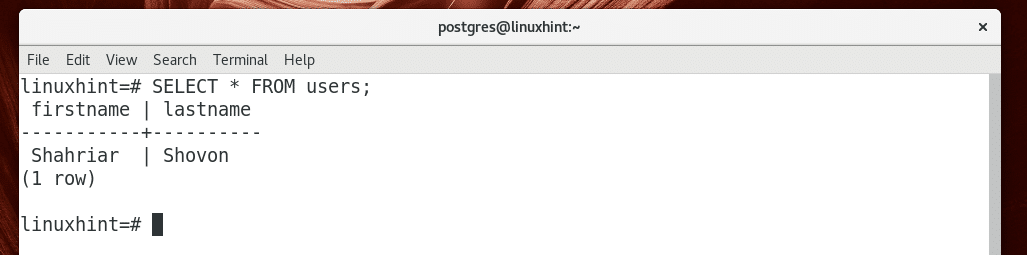 As you can see from the screenshot below, you’re logged in to the linuxhint database.
