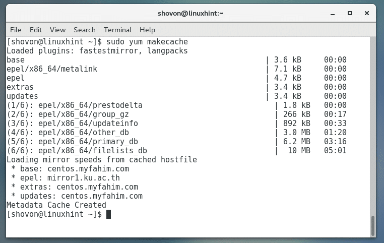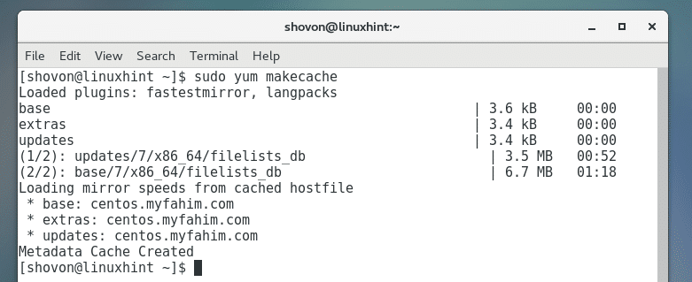 Now update the package repository cache of your CentOS 7 again with the following command: