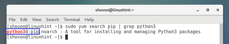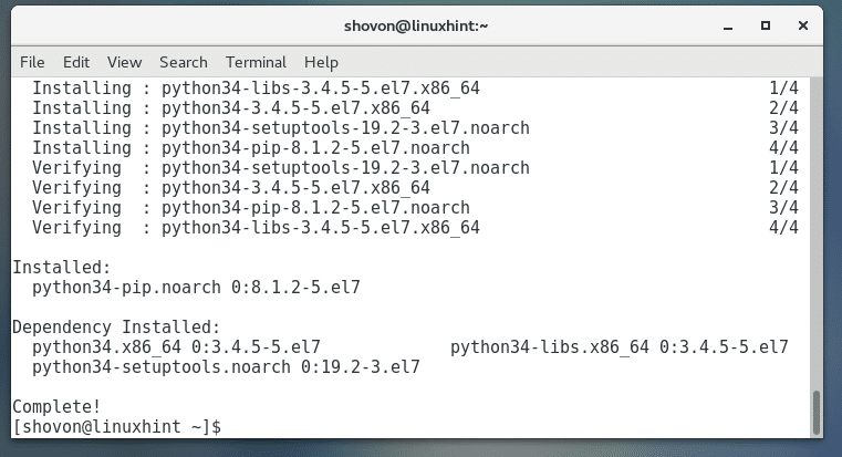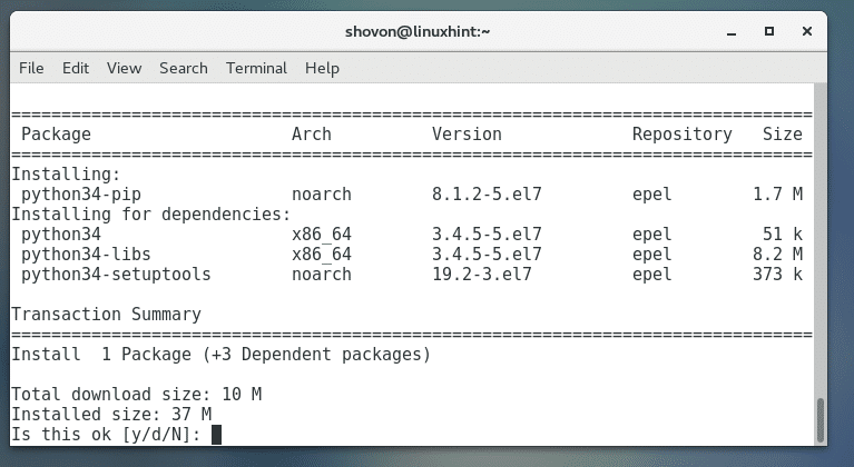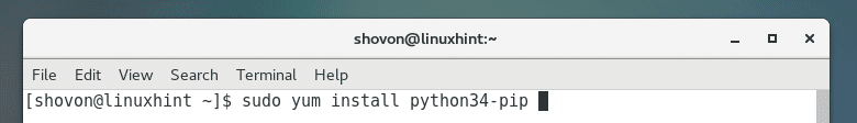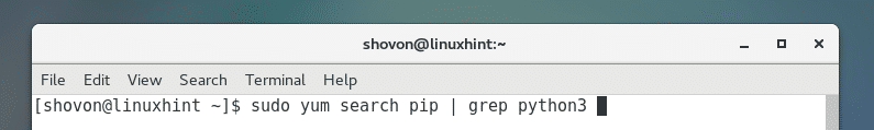 At the time of this writing, on EPEL repository of CentOS 7, Python 3.4 is available. By the time you read this article, the package version may change. If the package version changes, so will the package name. So I am not going to install any specific version of Python 3 PIP. I will show you how to search for it and install what is available when you read this article.