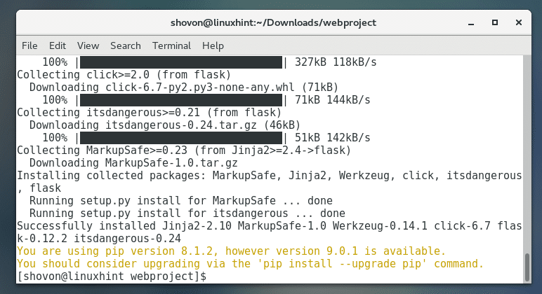 As you can see the version of PIP installed is PIP 8.1.2. By the time you read this, the version may change but don’t worry about it. It should work the same way.