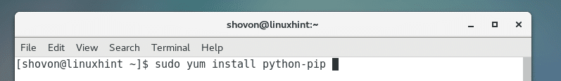 Python PIP is not available in the official package repository of CentOS 7. But it is available in the EPEL package repository. Before you can install Python PIP on CentOS 7, you must add EPEL repository to your CentOS 7.