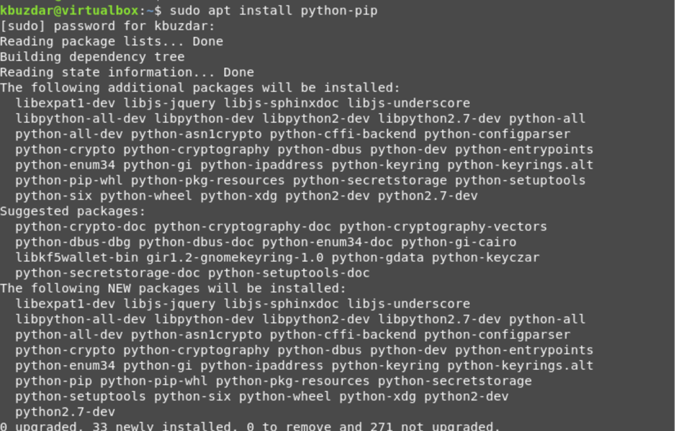 Step 2: Install pip along with all dependencies for python 3 by executing the following command: