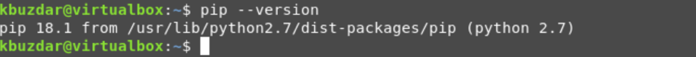 The installed version will be displayed on the terminal. Now, type the following command to install the pip tool for Python2: