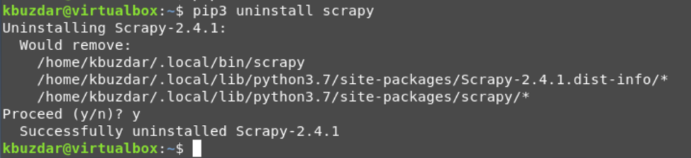 To uninstall the scrapy package, run the below-mentioned command: