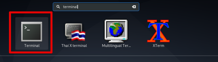 Open the terminal command line window. To do this, click the top section ‘Activities’ and type the ‘Terminal’ keyword in the search bar. Click on the ‘Terminal’ icon as follows: