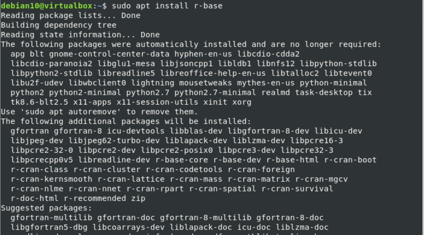 You have learned how to install R and run R programs on the Debian 10 environment. We have provided in this article how to install R packages by using a simple command from CRAN. You can easily Install any R packages and load its associative library on your system. Now, you can easily install and use R on your Debian system.