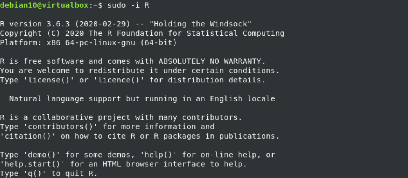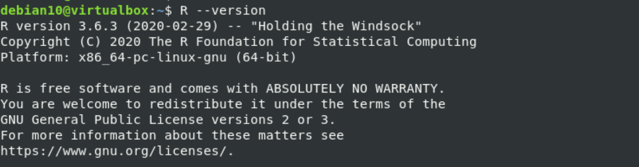 Now, check the R language installation on your Debian 10 system by using the below-given command: