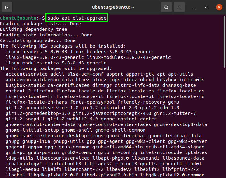 These packages can be updated using the “dist-upgrade” command mentioned below. Type the command in the terminal to get an update: