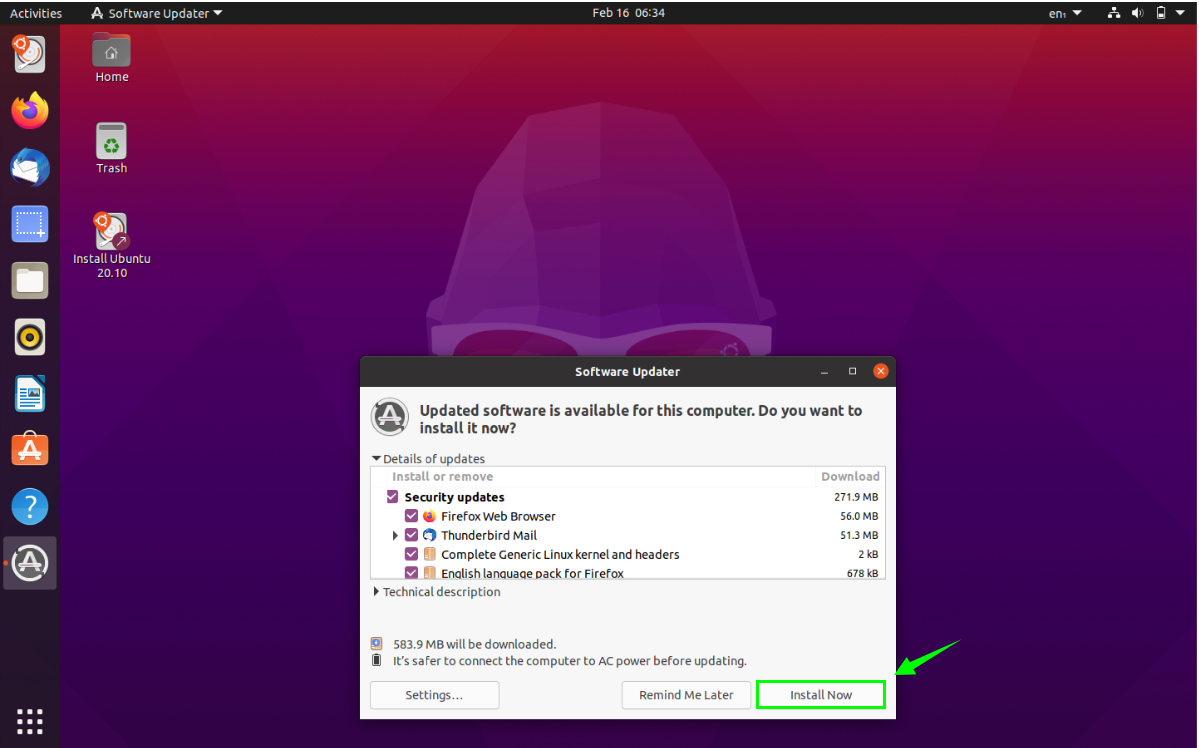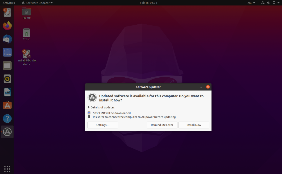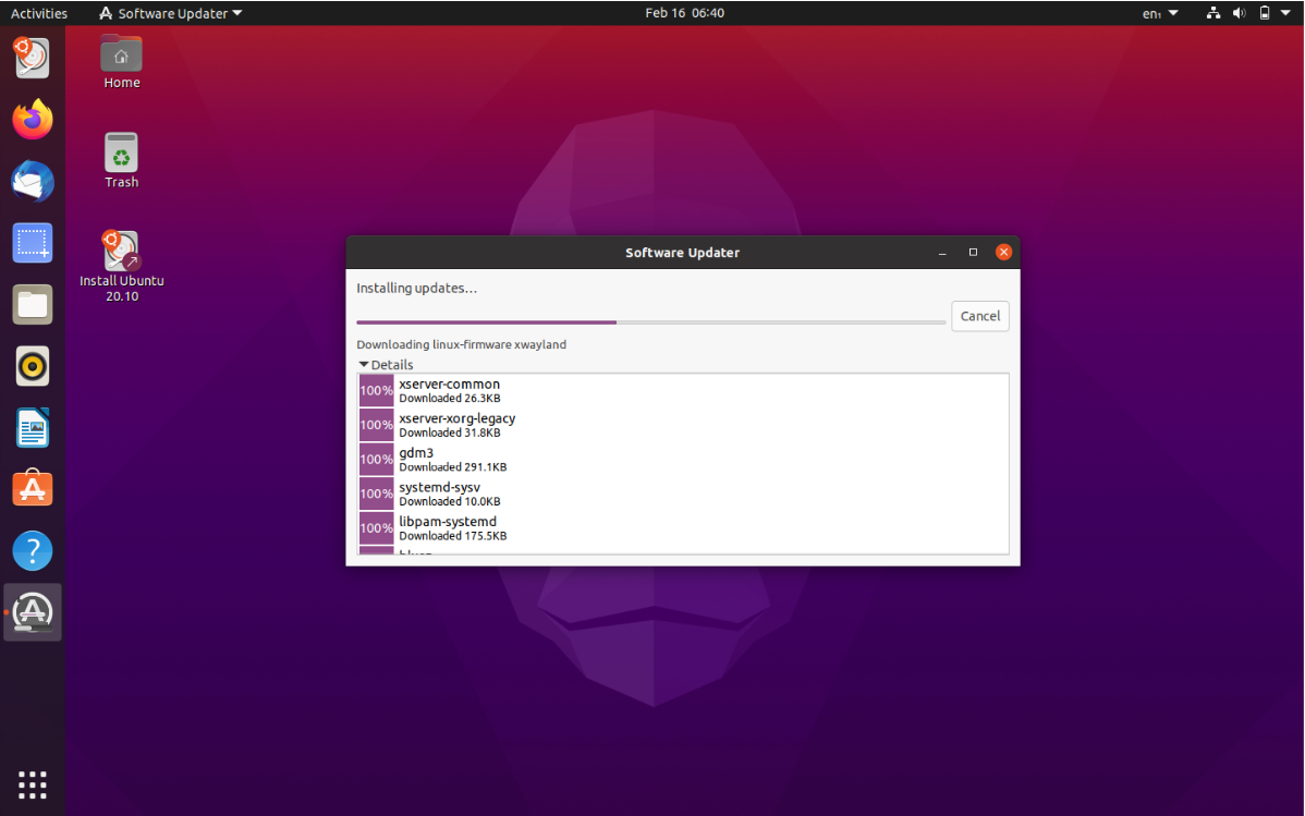 So, the updated version of Ubuntu and the updated packages will be installed on the system. A window may ask you to restart your system to take the changes into effect.