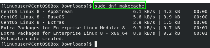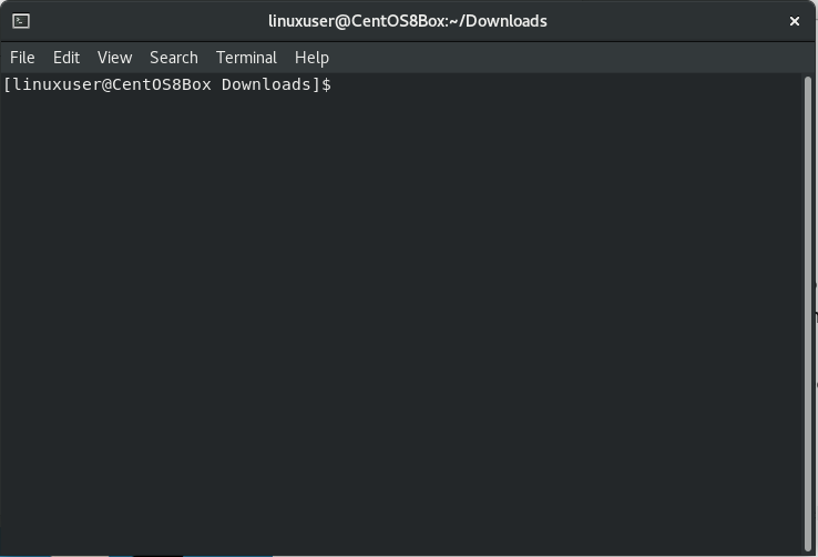 Now, type the following command in the terminal and make sure you are in the Downloads directory or the directory in which the RPM file of Slack is downloaded: