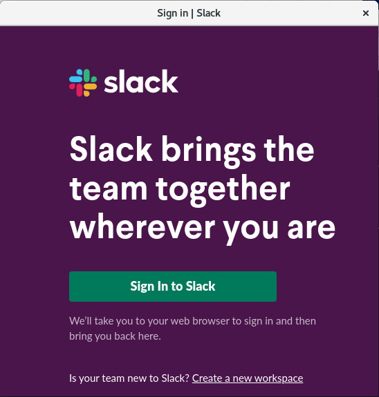 Here you can see the login screen of Slack on your CentOS 8 machine. Sign In to Slack and get started.