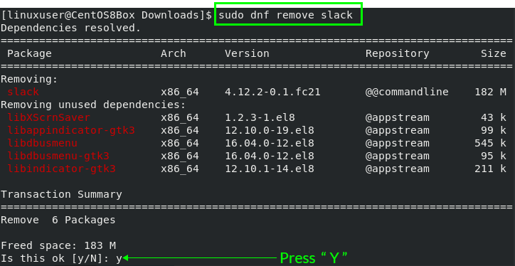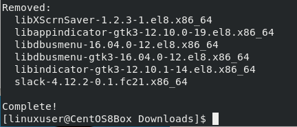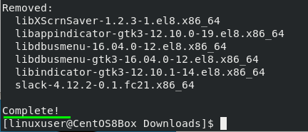 Slack will be successfully removed or uninstalled from your CentOS 8 machine.