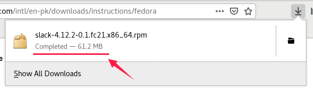 Once the RPM file is downloaded, open the directory in which the RPM file of the Slack application is downloaded.