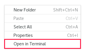 Open the directory in the terminal by right-clicking in the directory and selecting the “Open in terminal” option.