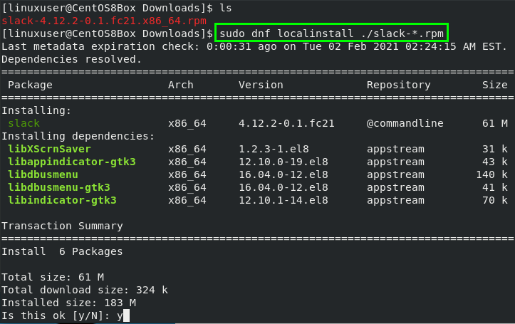 If you want to uninstall or remove Slack from your CentOS 8 system due to any reason, You can do so by typing the command given below in the terminal of CentOS 8.