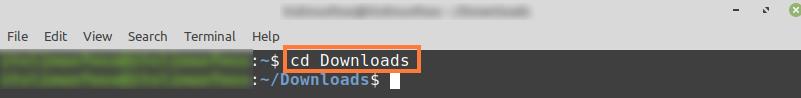 Then, fire up the terminal and navigate to the ‘Downloads’ directory with the command: